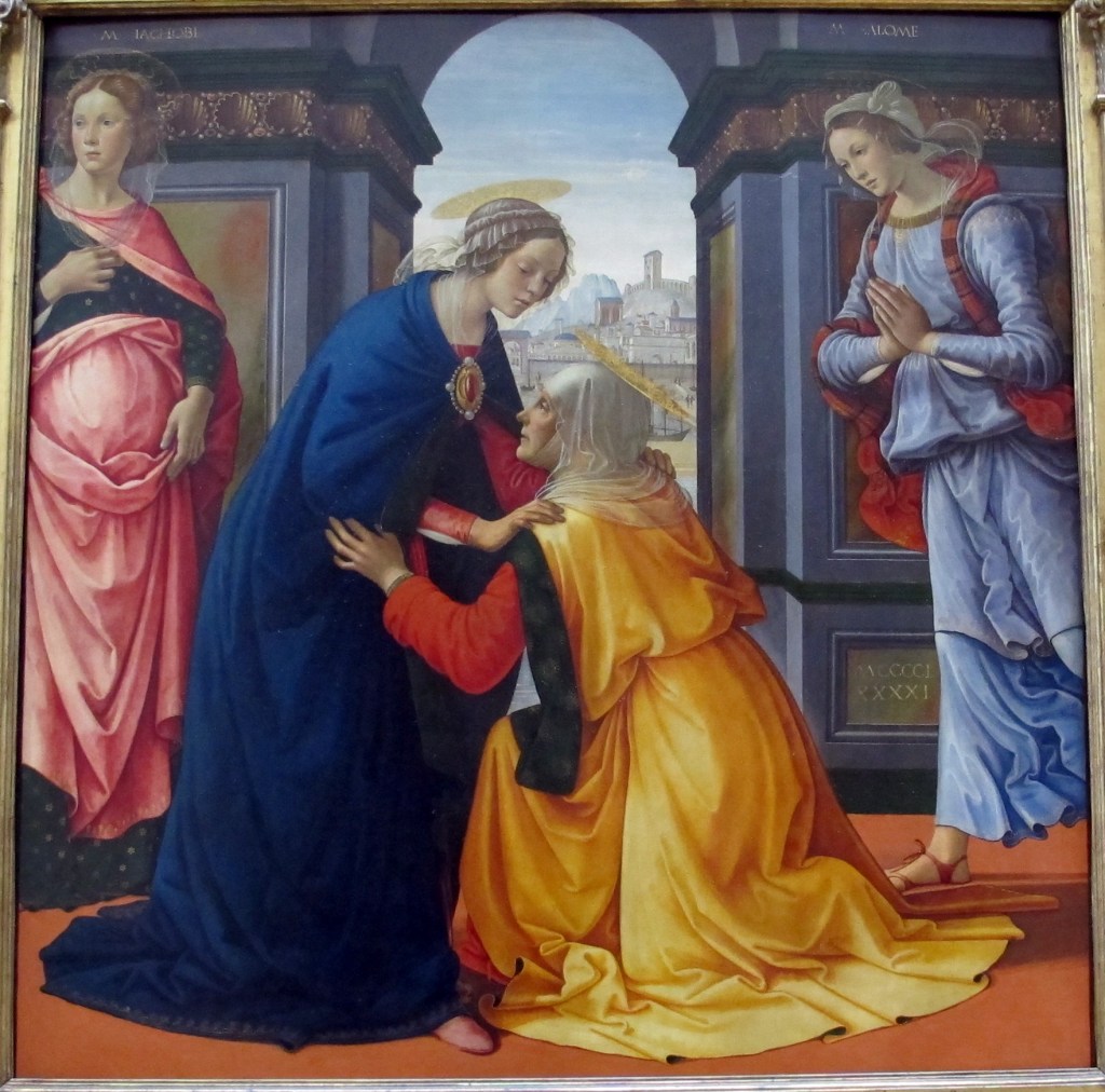 « …et elle entra dans la maison de Zacharie et salua Elisabeth. » [aspadzomaï], c’est d’abord attirer à soi ; par suite, c’est accueillir avec empressement, saluer, embrasser, et même plus largement aimer, s’attacher à. On voit que ce verbe évoque d’abord un mouvement physique, une implication physique dans un mouvement du cœur à l’occasion d’une rencontre. Voilà qui est étonnant : Marie entre dans une maison qui n’est pas la sienne, mais celle de Zacharie et Elisabeth, or c’est elle qui a le premier mouvement. Mais sans doute est-ce tout simplement l’aboutissement du mouvement dont elle a l’initiative et qui la porte depuis la lointaine Nazareth : elle va, elle se hâte, elle court, elle est tout élan vers sa parente et lorsqu’elle entre enfin dans la maison, c’est pour embrasser tout simplement celle qui est à l’origine de tout son mouvement. Et comme l’ange l’a saluée en premier en entrant, elle salue la première en entrant : le parallèle n’est pas anodin. Elle fait bénéficier celle dont l’ange lui a parlé de l’élan même dont elle a bénéficié. Cela aussi, c’est une image pour chacun d’entre nous : puiser dans l’élan qui nous a porté la vie notre élan vers d’autres.