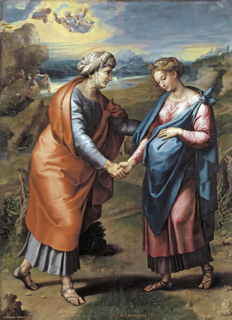 Cette question n’est certes pas la première chose que dit Elisabeth : ses premières paroles sont tournées vers sa visiteuse, vers celle qui déclenche en elle une telle réaction. Elle commence par la louange et la bénédiction. Ce dernier mot revient deux fois, [éou-logéïn], « dire du bien« , « tenir une parole heureuse« . Au sens propre, elle fait l’é-loge de celle qui vient à elle, et de l’enfant qu’elle porte. Elisabeth est vraiment dans la rencontre, parce qu’un élan intérieur la porte d’abord à l’émerveillement à l’égard de l’autre. Je voudrais pouvoir accueillir toujours l’autre personne de cette manière, en voyant en elle ou en lui une personne à part, en accueillant a priori tout le bien qu’on dit d’elle ou qu’on peut dire d’elle.