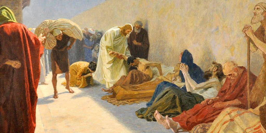 En tous cas, « il prend soin de nombreux qui ont mal du fait de nombreuses maladies,… » Je note que Marc ne parle pas expressément de guérison, même si le mot ne l’exclut pas, mais il parle de « prendre soin« , et c’est bien plus beau. Jésus ne fait pas le guérisseur automatique, il prend du temps avec chacun, on devine à travers ce mot qu’il s’approche, qu’il écoute, qu’il échange, qu’il console, et sans doute qu’il soulage. Cela prend beaucoup de temps, mais le soin des personnes exige du temps, c’est la condition pour qu’elles reprennent espoir et désir de vivre : il en va ainsi tant dans le « médical » que dans l’ « éducatif » et toutes les formes d’accompagnement des personnes. Marc ne dit pas « il les guérit tous », il parle de « nombreux« , ce qui est une nuance cohérente avec ce « prendre soin« . Peut-être n’ont-ils pas tous été guéris, mais Jésus, plutôt que de se soumettre à cette muette injonction, a préféré « prendre soin » des uns et des autres, et s’est ainsi approché de beaucoup, et a affronté leur mal avec eux. Je sens que l’illustration va être difficile à trouver : tant de représentations montrent Jésus guérissant avec un geste à distance en direction d’une foule indistincte, alors que c’est tout le contraire !!