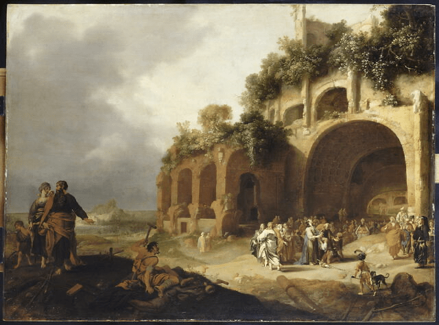L’épisode précédent s’est passé dans les frontières du grand port maritime phénicien de Tyr : pas dans la ville-même, mais dans le territoire. Les grandes cités antiques ne sont pas que des villes, elles ont toujours un « territoire » comprenant des villages et des campagnes, qui constitue le terrain de son activité économique et nourricière. On se souvient que Jésus est venu là pour mettre de la distance avec la foule, et la pression qu’elle exerce, qui tend à (ou qui risque de) le dévier de l’axe de sa mission. Il n’a pu rester caché, mais il a aussi découvert, chez une femme pourtant Grecque de religion et Syro-phénicienne d’ascendance, une profondeur de foi qu’il n’avait pas souvent rencontrée dans le peuple à la rencontre duquel il se consacre.